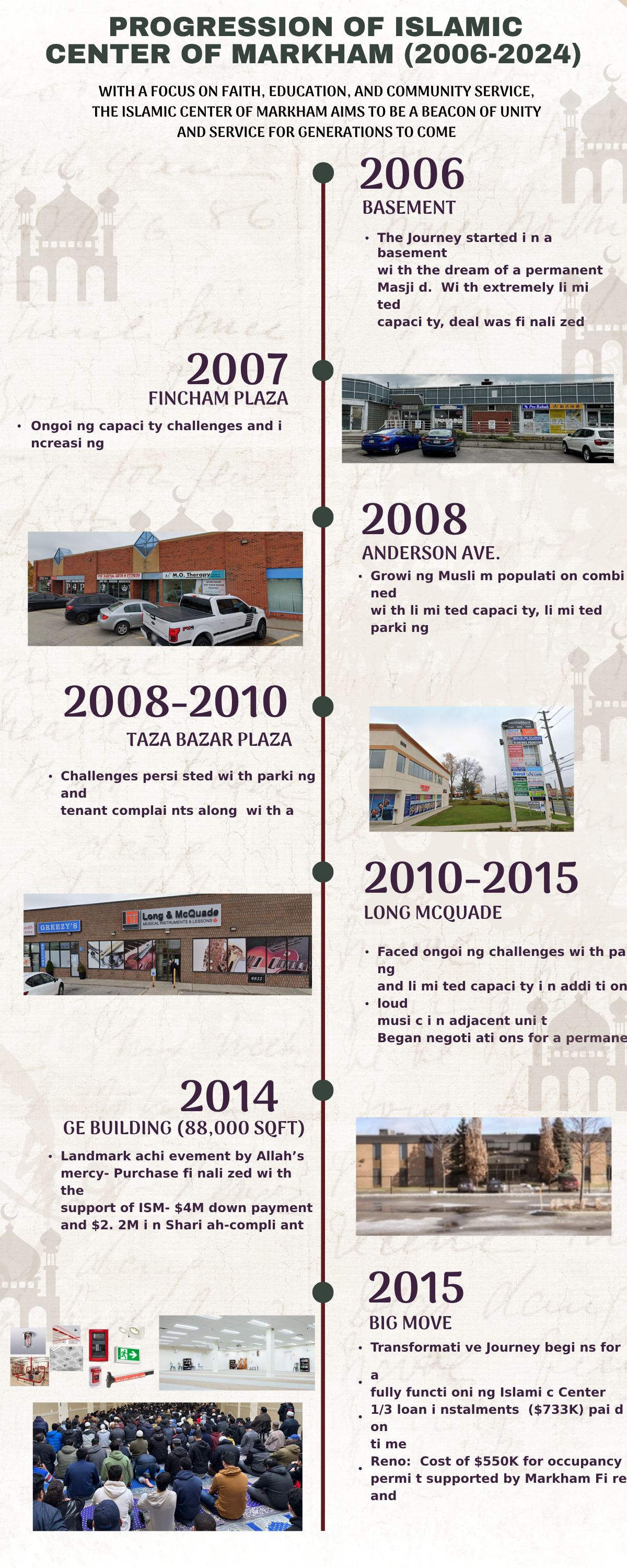 Masjid Darul Iman and the Islamic Center of Markham are central to the vibrant Muslim community in Markham. Beyond a place of worship, we cater to the religious, educational, social, and recreational needs of our community. Our services and facilities are detailed throughout our website.